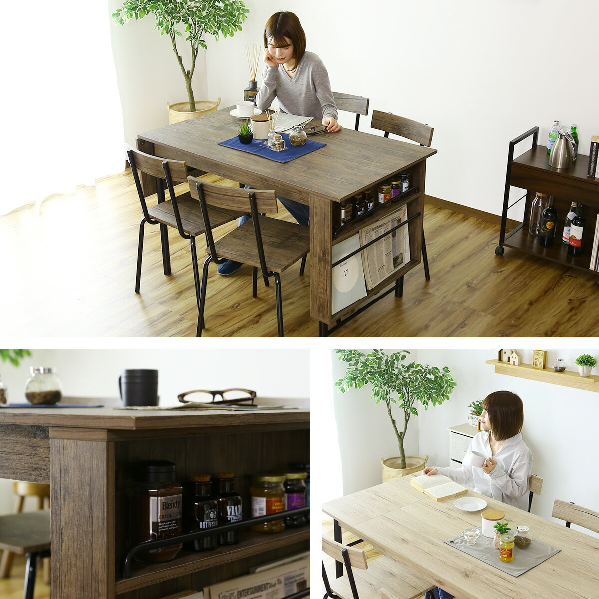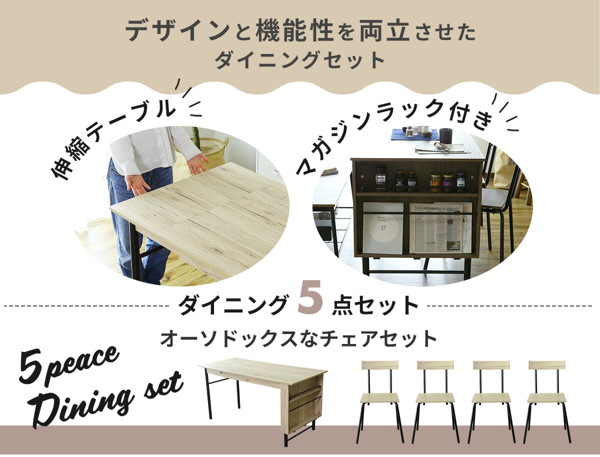 配送について 送料 無料 (北海道+10,000円・沖縄・離島・一部地域見積り) ●商品詳細 -infomation- 商品名 ダイニング5点セット Mocha【モカ】 サイズ 【テーブル】幅120/150×奥行70×高さ75(cm) 【チェア】幅41.5×奥行49.5×高さ77.5 座面高44.5(cm) 材 質 合成樹脂化粧繊維板・スチールパイプ 重 量 【テーブル】約25kg 【チェア】約4kg※1脚あたり 耐荷重 【テーブル天板】30kg 【テーブル棚上段】10kg 【テーブル棚下段】10kg 【チェア】80kg 梱包サイズ 【梱包1】幅134×73×10(cm)/26kg(梱包材含む) 【梱包2】幅70×70×10(cm)/17kg(梱包材含む) 備 考 ※組み立ては必ず2人以上で行ってください。