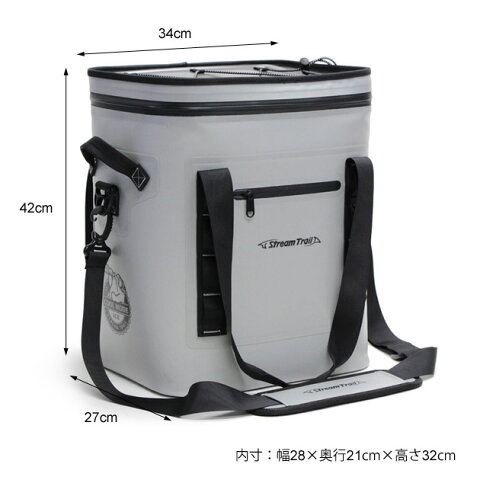 商品仕様 サイズ : 幅34×高さ42×奥行27cm(内寸:幅28×高さ32×奥行21cm)約18L 材質 : TPU 完全氷解まで36時間(Stream trailにてテスト) ラッピング 不可 ブランド Stream Trail/ストリームトレイル Stream Trail(ストリームトレイル)は、30年以上のアウトドアやフライフィッシングの道具作りに携わった経験とノウハウを元に水辺に関わるギアやアクセサリーの開発を1997年から行い、2011年より物を入れる袋からバックそのものが道具であるべきとして機能性と使い易さを追求し、海、川、水辺のみならず、天候への対応も熟慮して防水性の高いバッグを中心に本格的にバッグブランドとしてスタート。