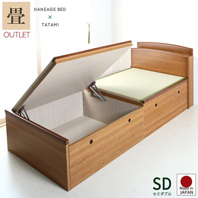 跳ね上げ式畳ベッド セミダブル ベッドフレーム 畳ベッド 収納 日本製 収納付き 跳ね上げ式 宮付きタイプ セミダブルベッド 収納ベッド 大量収納 大容量収納 アウトレット コンセント 富士